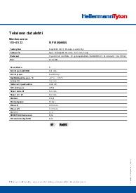 | Materiaali | Polyamidi 6.6 modifioitu, UV- ja lämpöstabiloitu (PA66HIRHSUV), Ruostumaton teräs (SS304) |